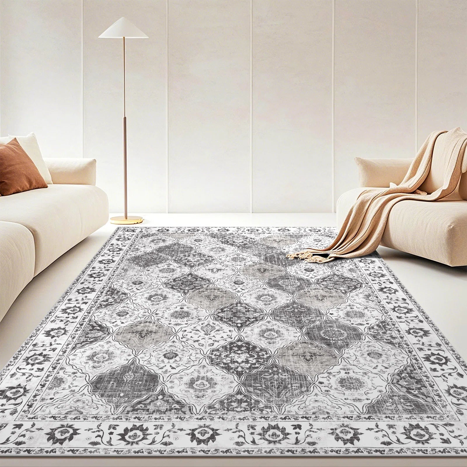 Note: Please allow 0.5-inch data deviation due to manual measurement and the pictures may not reflect the actual color as different monitor displays and light effects. The rug is folded up when it's packed and might arrive with temporary creases but it will not affect use. Roll the rug in the opposite direction or steam it to remove carpet creases.