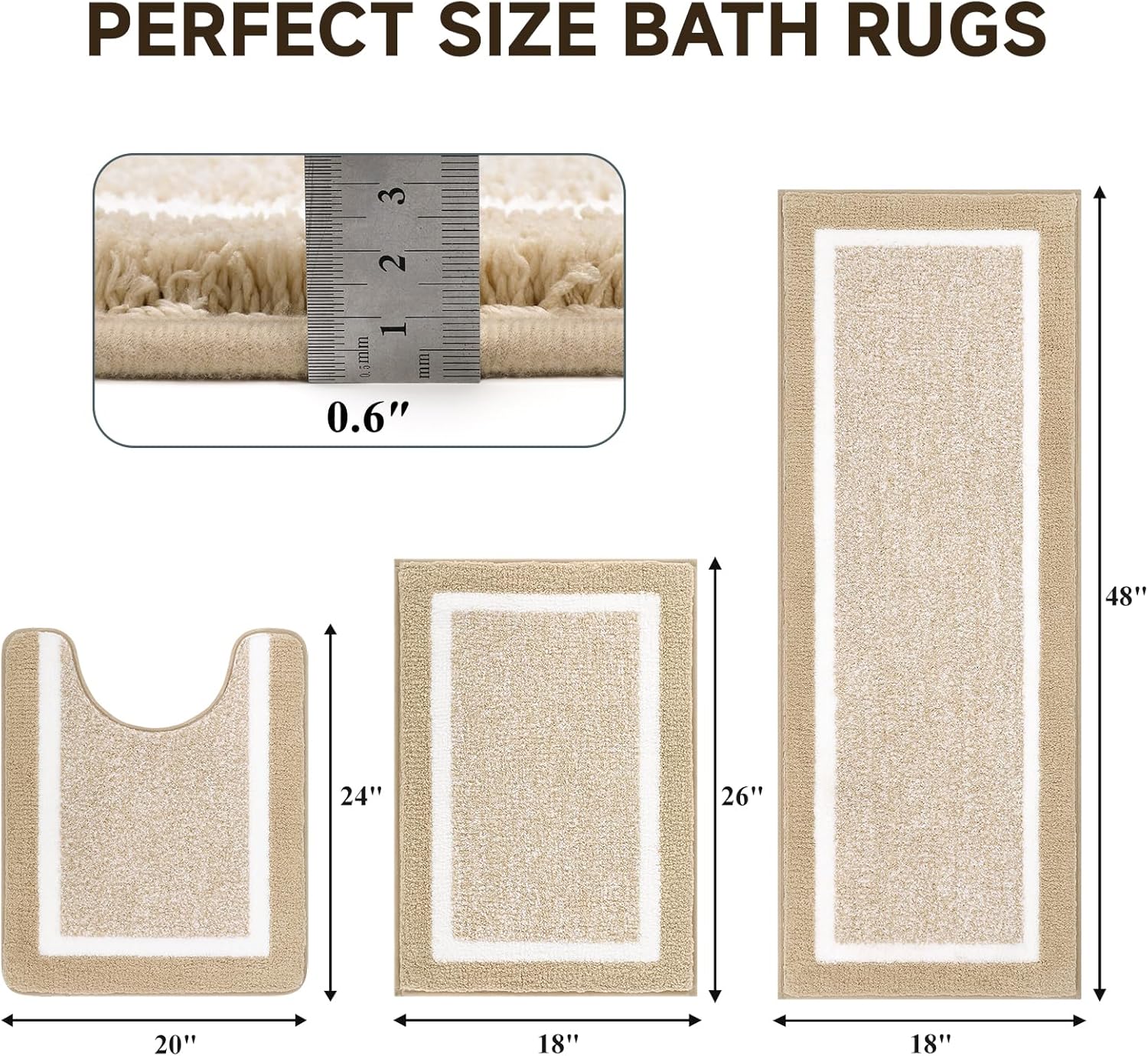 Multi Purpose: HEBE bathroom floor mats (20"x32"+20"x59"+U20"x24") are the perfect choice for bathrooms, washrooms, bedrooms, living rooms, spas, and wherever you need bathroom floor mats.