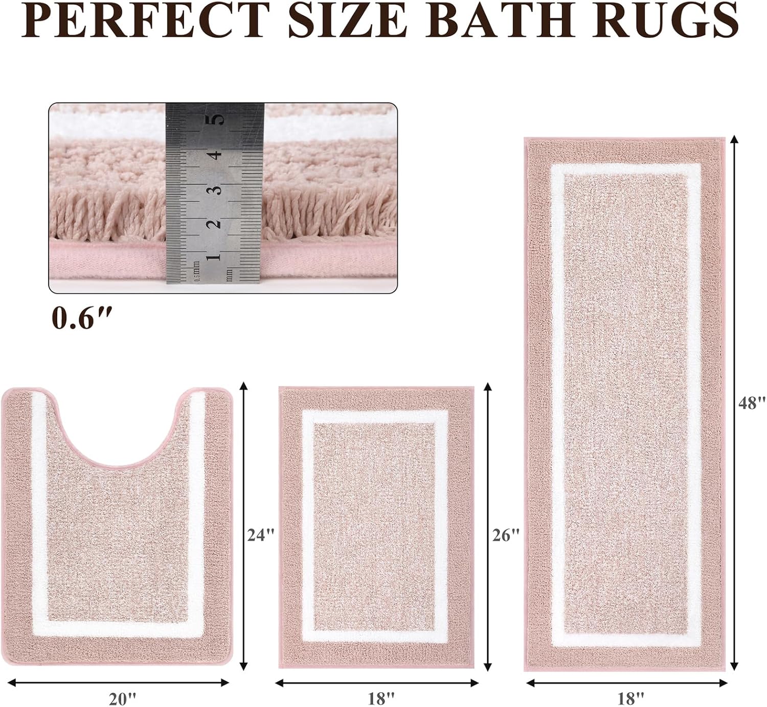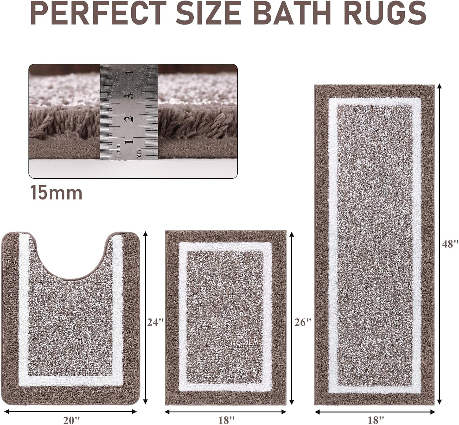 Non-Slip Bath Mat: The newer version of TPR adhesive makes the 3 pieces bathroom rugs sets more durable, can maintain the new appearance year after year, and can firmly grasp the ground.