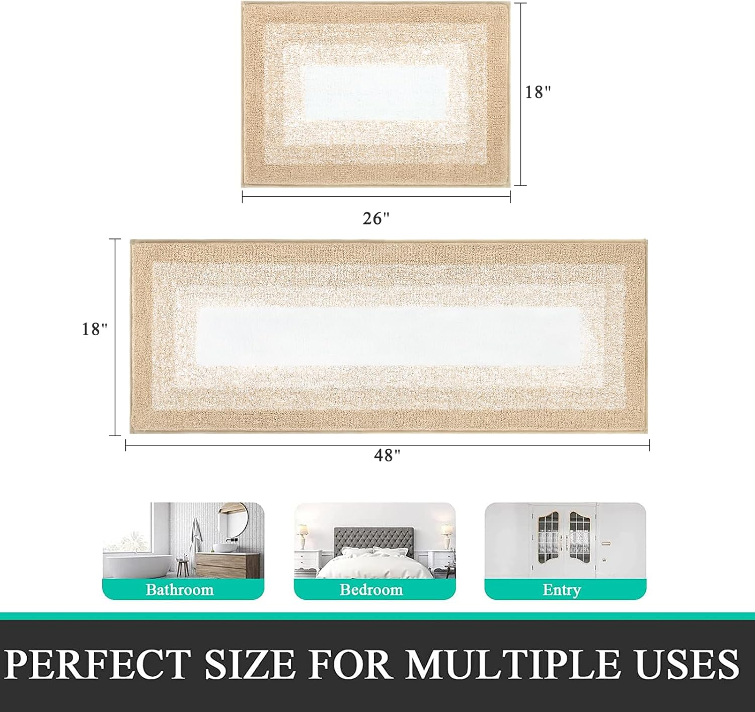 Non-Slip Bath Mat: The newer version of TPR adhesive makes the 2 pieces bathroom rugs sets more durable, can maintain the new appearance year after year, and can firmly grasp the ground.