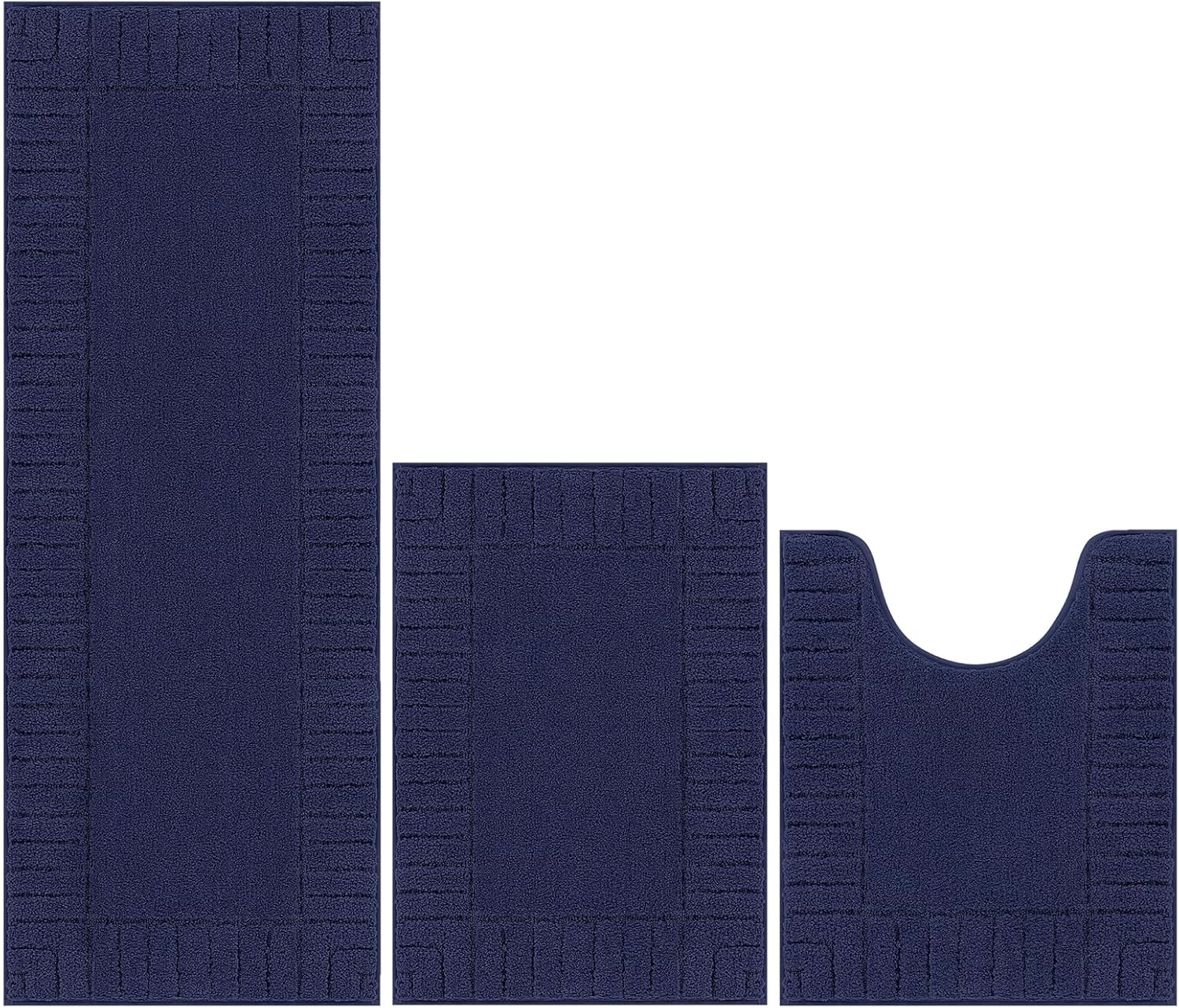 HEBE Bathroom Rugs Sets 3 Piece Bathroom Shower Rugs with U-Shaped Contour Toilet Mat Absorbent Microfiber Plush Bath Mats Non Slip Bath Rugs Machine Washable Shaggy Bath Mat Set