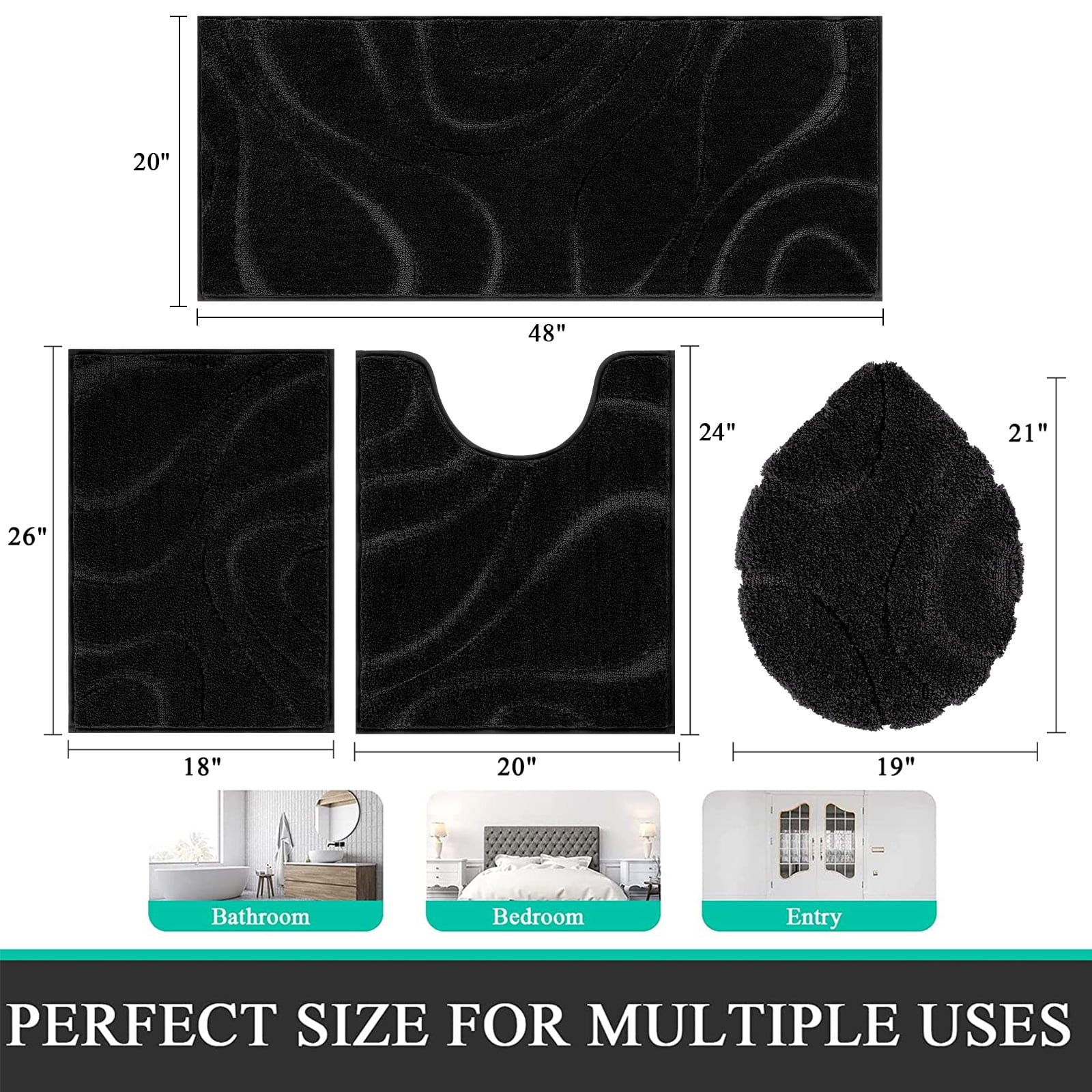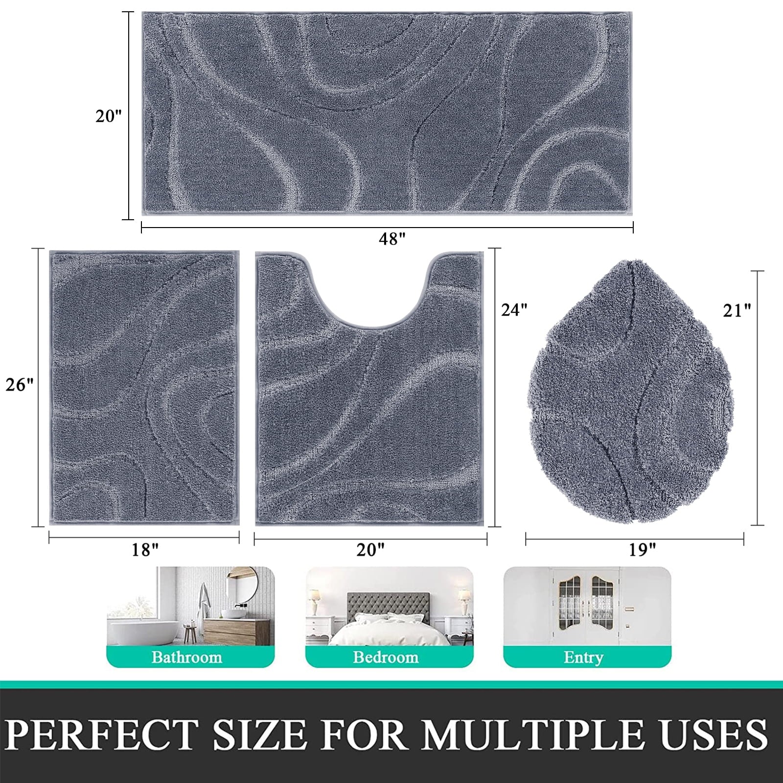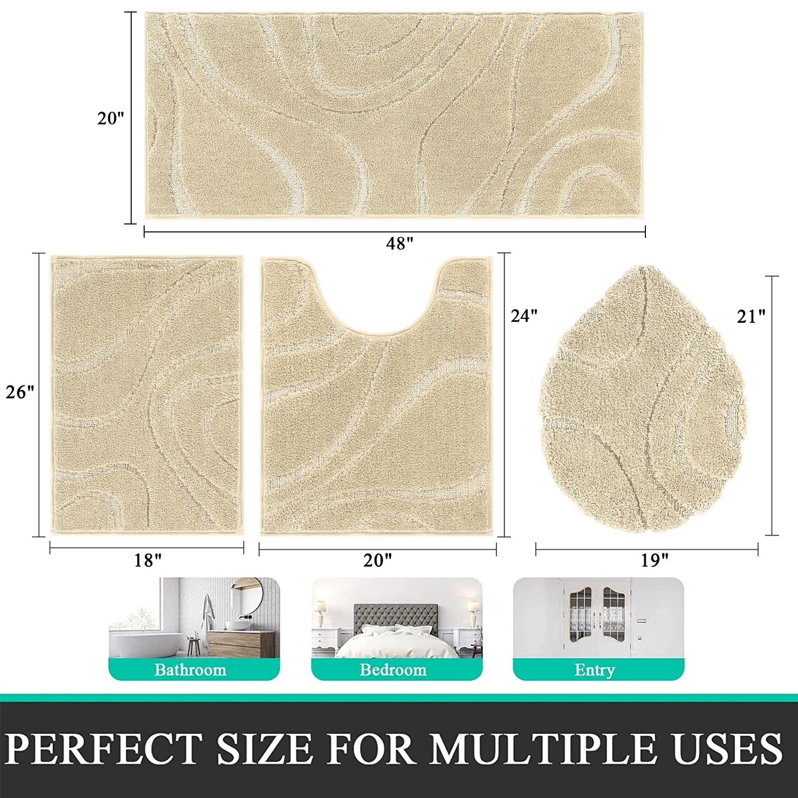 Perfect Size: The four-piece set includes sizes 18"x26", 20"x48", U20"x23", and Cover19"x21", making it ideal for protecting your bathroom floor from damage.