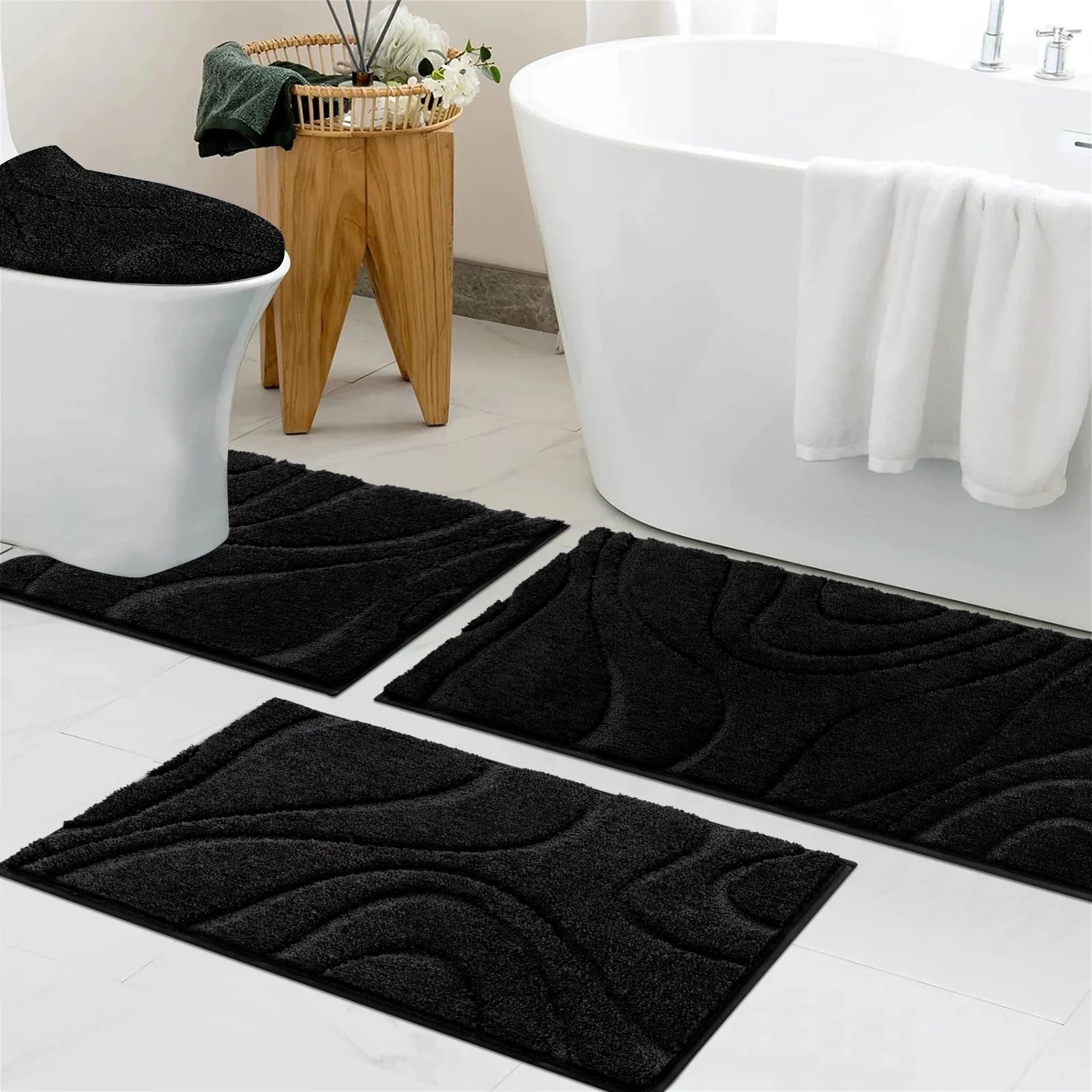 Super Absorbent: The premium microfiber material quickly absorbs and locks excess water and moisture from the bath, shower, and sink, keeping your floors dry and your home tidy.