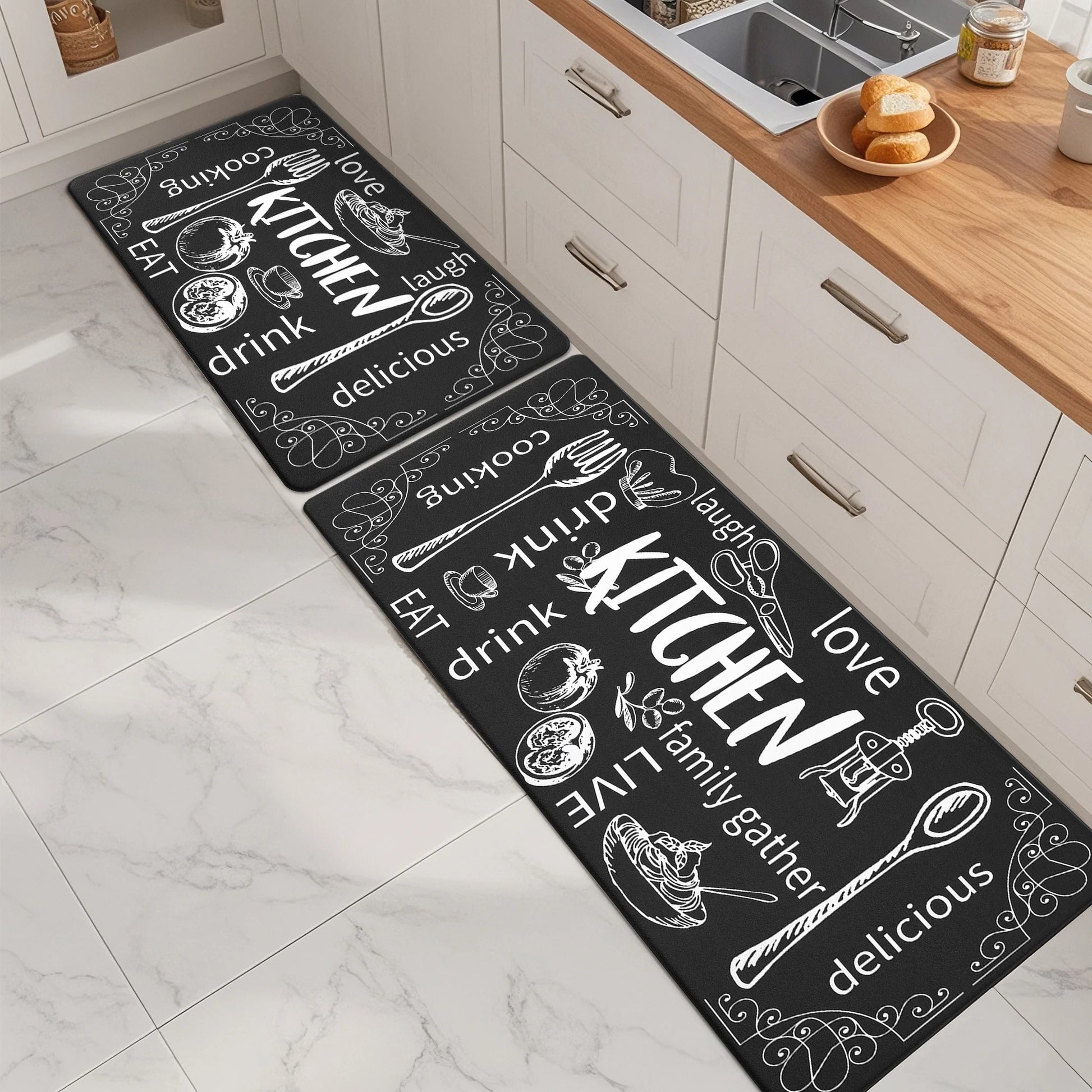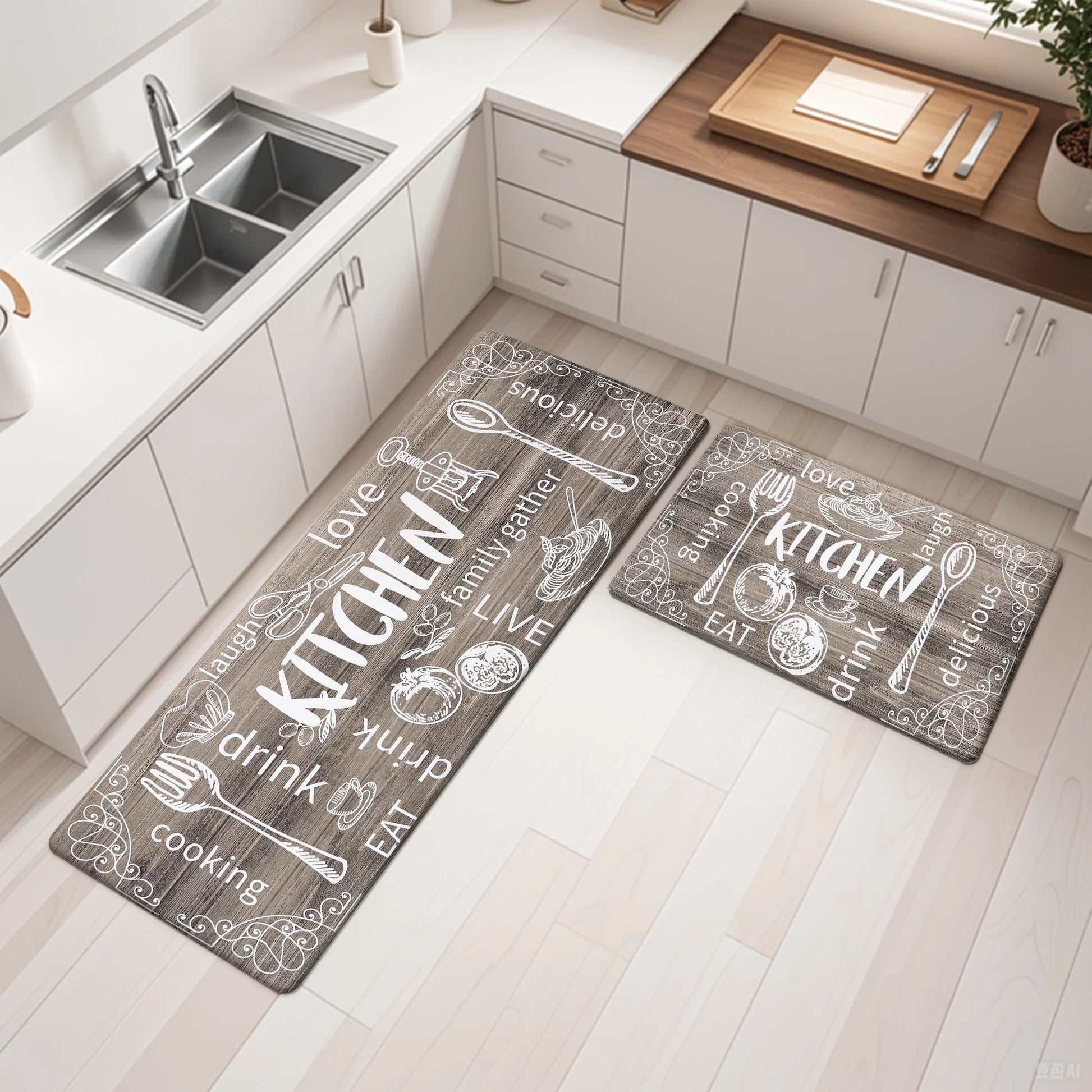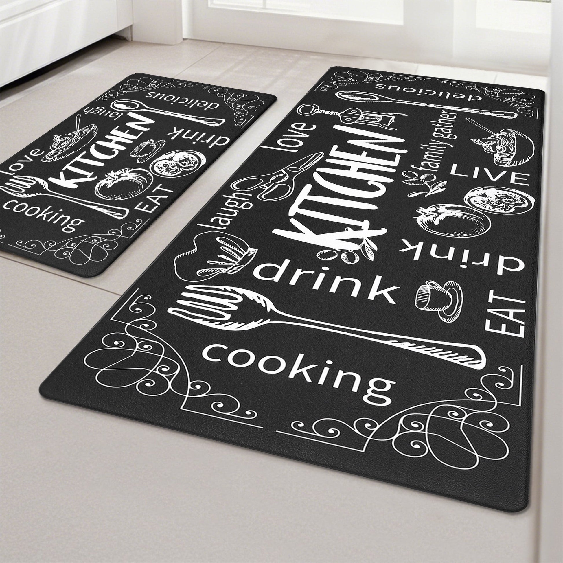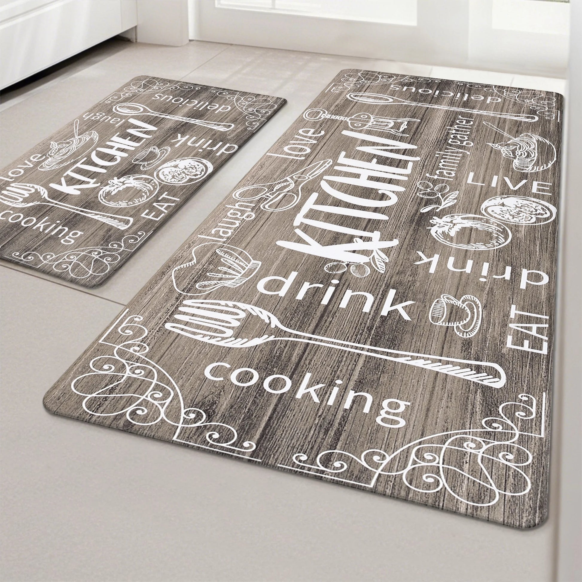 HEBE Farmhouse Kitchen Rug Set of 2, Non-Slip Anti-Fatigue Waterproof Cushioned Mat for Kitchen, Dining & Laundry Room, 18"x30"+18"x48"