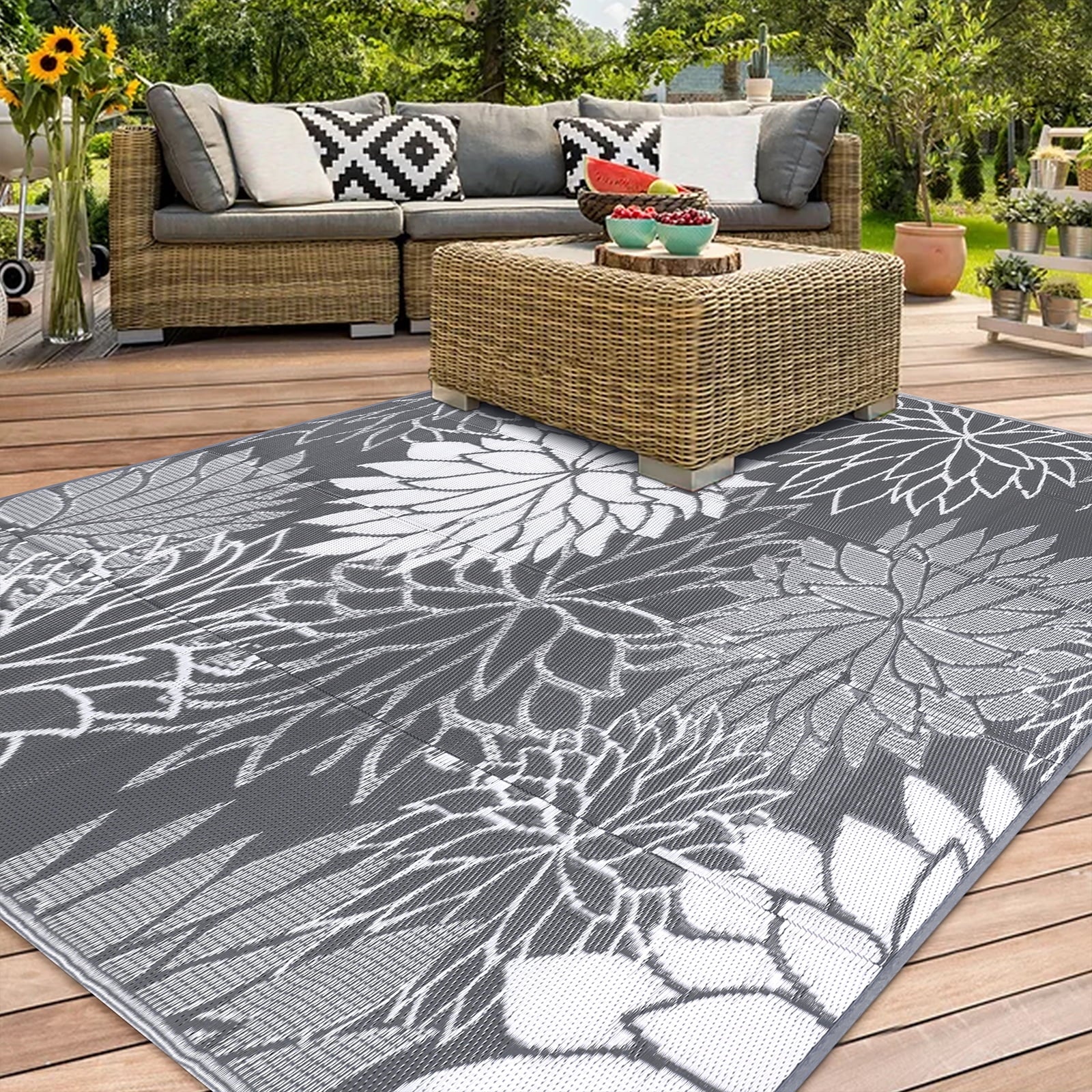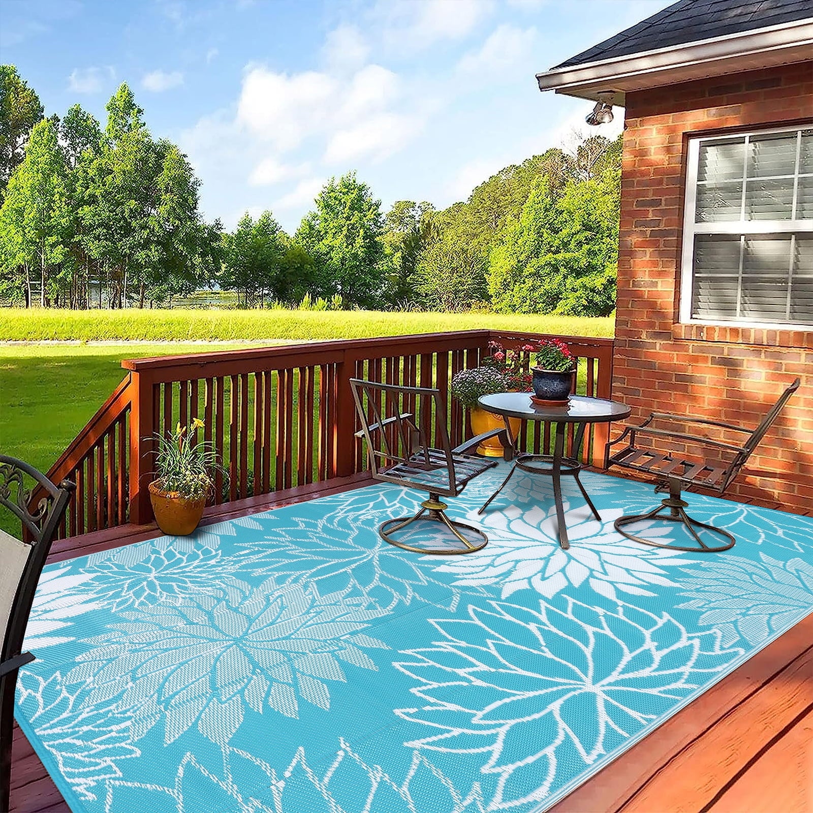 | Reversible Mats: This outdoor rug is reversible, two-sided design allows you to have two different looks with one quick flip. Plastic Straw Rug: Made from recycled plastic staw, along with edging that is heat treated to reduce fraying, soft and durable. Low Maintenance Patio Mat: Simply shake off dirt or spray clean with a hose, water on the surface will air dry quickly. Easy to Carry: This outdoor carpet can be folded into a compact size and carried directly in your car when you go out for an outing. Versatile: The camping rug is great option to elevate any entertainment space including patio, garden, beach, picnic, rv camping. 【Reversible Outdoor Rug】: HEBE outdoor plastic straw rug with reversible design and timeless medallion pattern on both sides, allowing you to have two different looks to add a pop of color to the patio. 【Premium Quality】:Made of upgraded recyclable polypropylene material, which makes this outdoor carpet more durable, waterproof and no fading. UV coated for long lasting colors and heat treated edge to avoid fraying caused by sunlight 【Lightweight & Portable】: This outdoor rug waterproof is lightweight and can be folded into compact size for easy storage,outdoor rugs for patios suitable for outdoor camping, beach trip, barbecue picnic or RV road trip. 【Easy Cleaning Outside Camping Rugs】: As this RV mat is designed to be waterproof and stain resistant,it will not absorb moisture and get damp or moldy, just wipe clean with wet cloth or spray with a hose, this rv outdoor rug will air dry quickly. 【Versatile Outdoor Carpet】: Recyclable outdoor waterproof rug is pet and kids friendly. Great choice to elevate any entertainment space to be used as plastic outdoor rug, patio rugs outdoor waterproof, rv rugs for outside, camping rugs for outside your rv, porch rug, deck rug, balcony rug, straw beach mat, tent rug, balcony rug. |